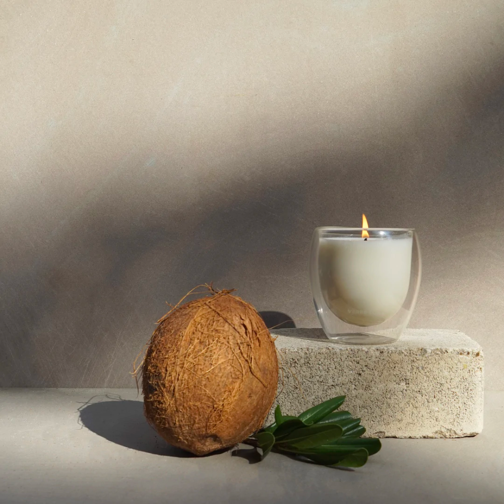 Sunkissed skin, rattan furniture, and a candlelit glow – this luxurious blend of creamy coconut and shea with warm mahogany and vetiver will transport you to the lobby of a 5 star resort at golden hour.