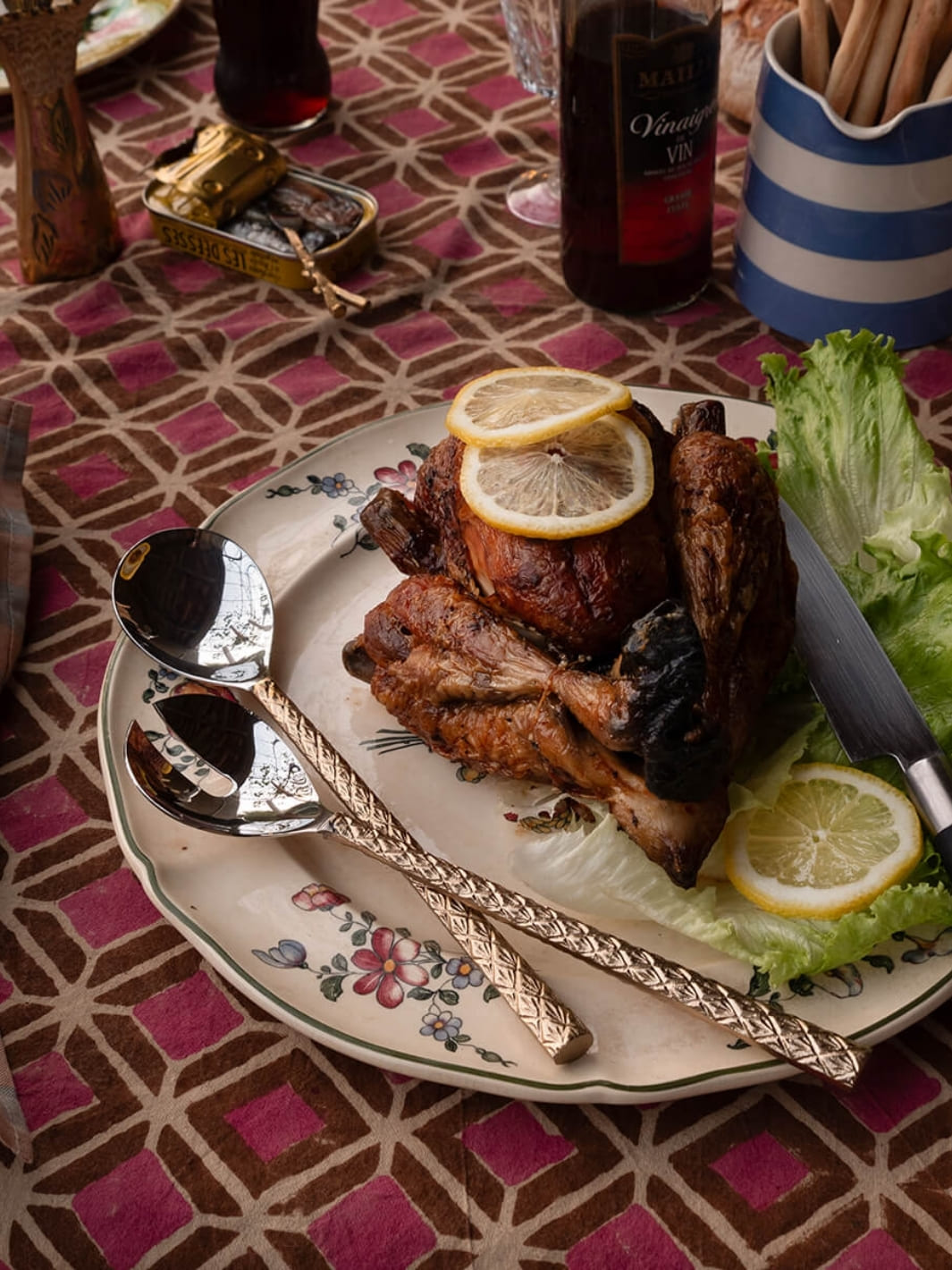 Serve your salad with this lovable salad server, made of brass and stainless steel.