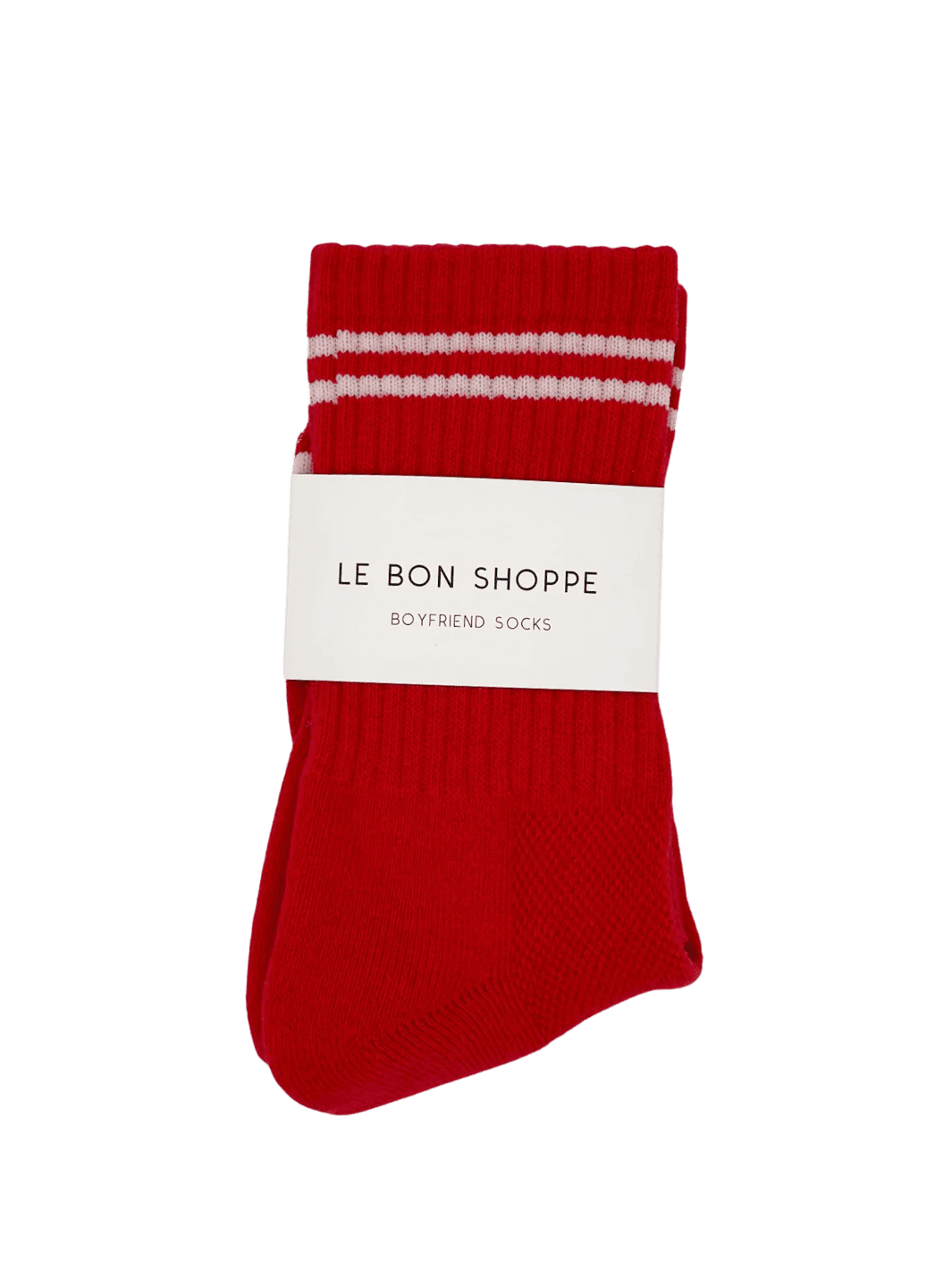 A true classic and year-round must-have - Boyfriend Socks bring a retro touch to your daily look. This longer-than-crew sock features stylish double stripe, breathable mesh on the top, and a supportive arch elastic. Durable, cozy, and a perfect match for any footwear.