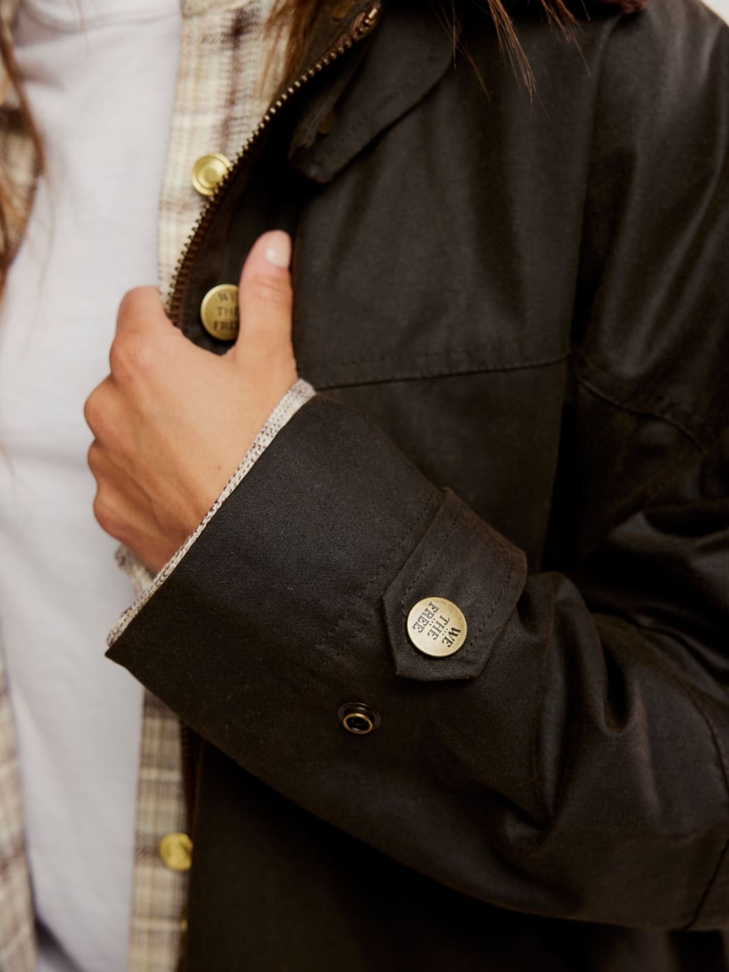 Too-cool, chore-inspired jacket from Free People's We The Free collection featured in a waxed cotton fabrication from their fabric mill, Halley Stevensons.