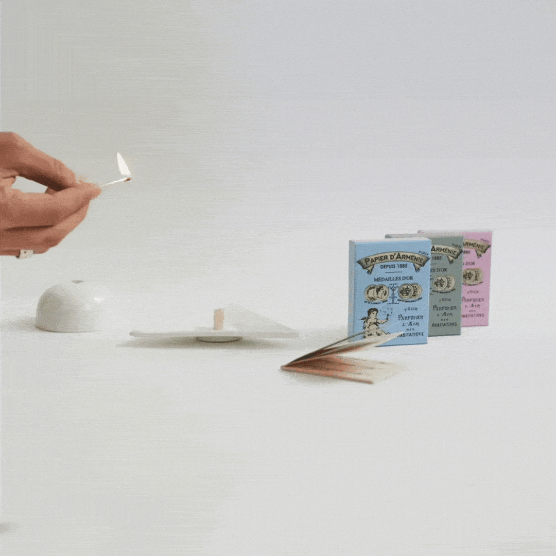 The Etoile d'Armenie burner is designed to diffuse the scent slowly through the room using the tray and dome. Clean the tray and dome regularly with soap and water. Recommended to be used with any Papier d'Armenie Paper Incense sold separately.