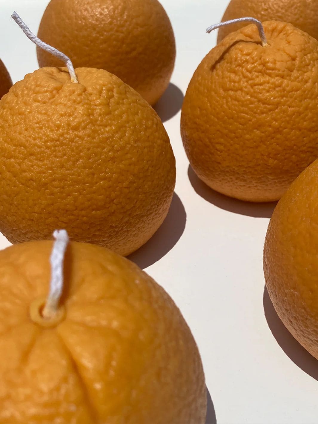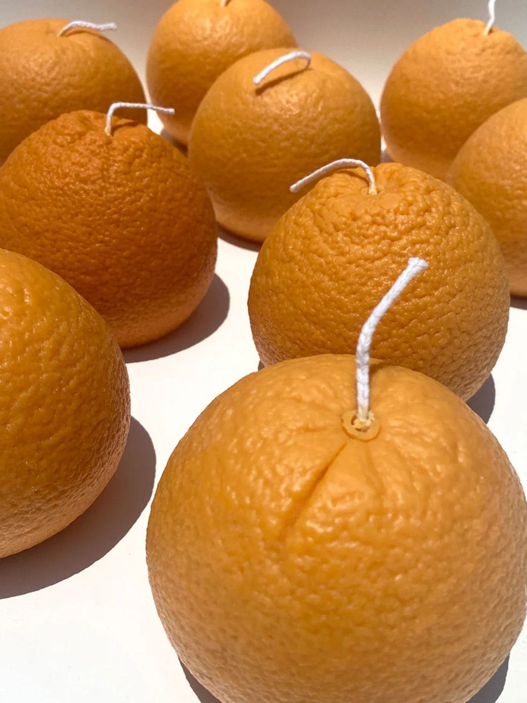 These delightful candles combine the zesty scent of blood oranges with a playful navel orange shape.