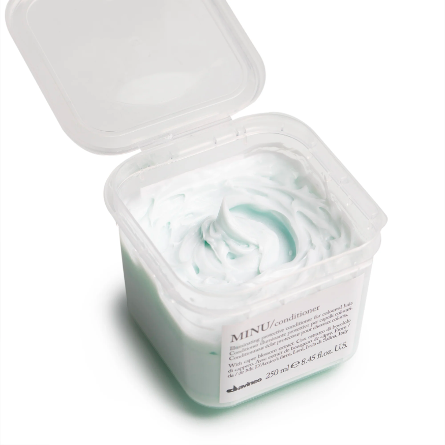 - After rinsing out MINU shampoo, apply a small amount of conditioner to lengths and ends.