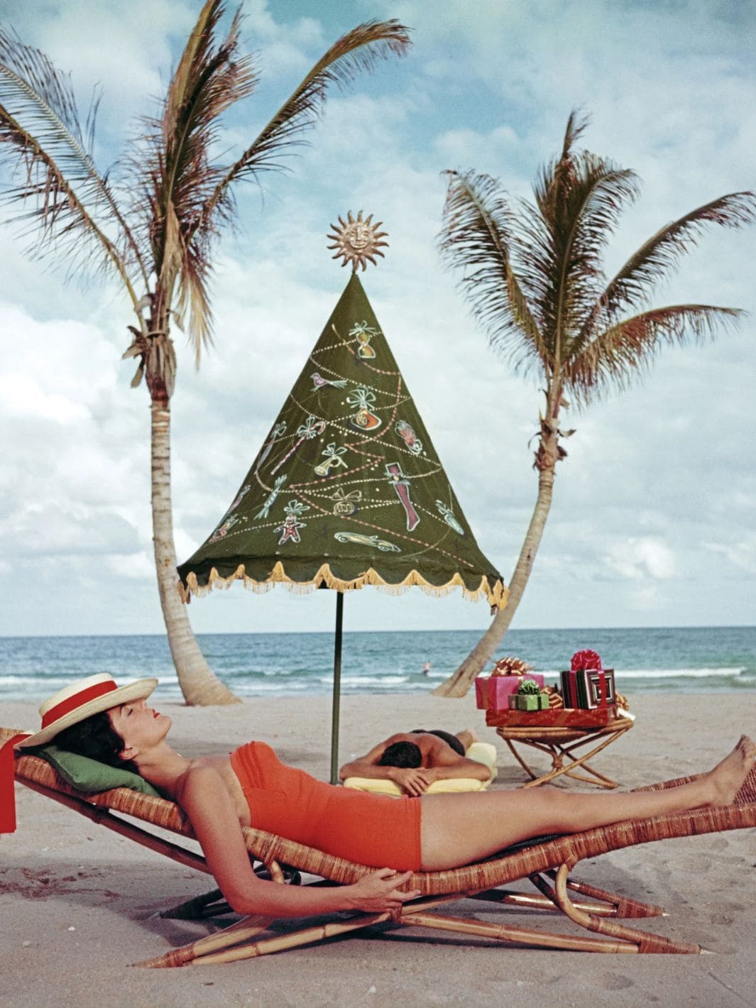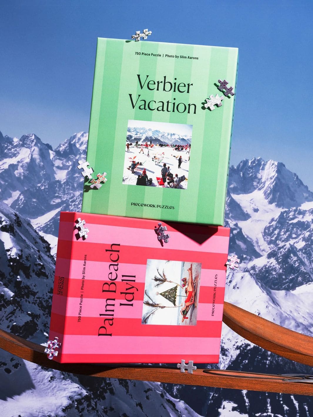 A sun-soaked scene of mid-century leisure, Palm Beach Idyll captures a couple lounging beneath a festive parasol on the sands of Palm Beach, Florida, circa 1955. This 750-piece puzzle invites you to assemble a moment of timeless elegance — part of Piecework Puzzle's official collaboration with Getty Images, home to the Slim Aarons archive.