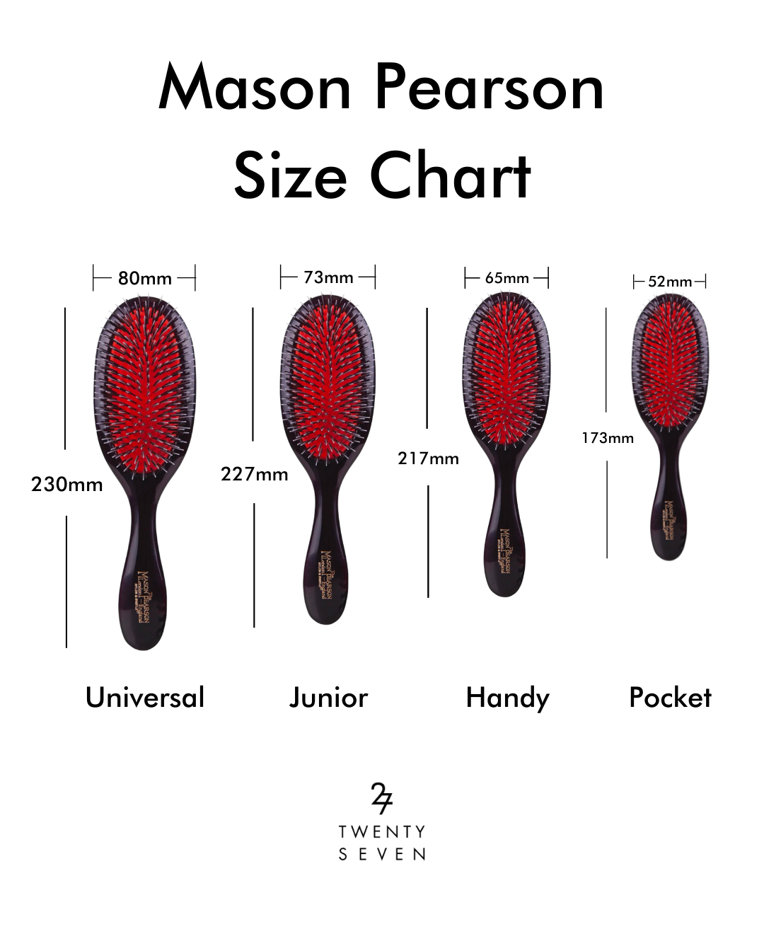 The Junior Mason Pearson size is for the gals with long thick hair or if you want the job done quickly and effortlessly.