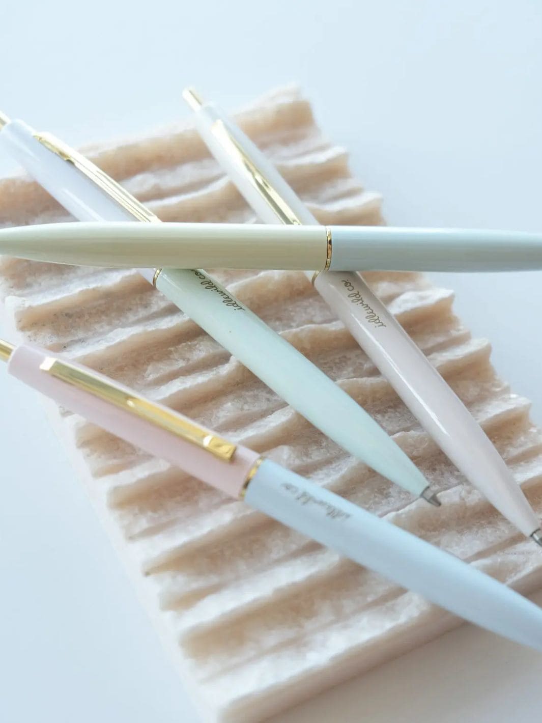 These Retro Pens are designed in the classic mid-century style, updated with vibrantly hued duo-toned, scratch-proof barrels–designed to last a lifetime. Best of all, the pen barrels are manufactured in metal- not plastic! This makes a noticeably nicer weight for writing, and is environmentally friendly to boot! Each set of four coordinating pens is packaged in a custom-designed, plastic-free package.