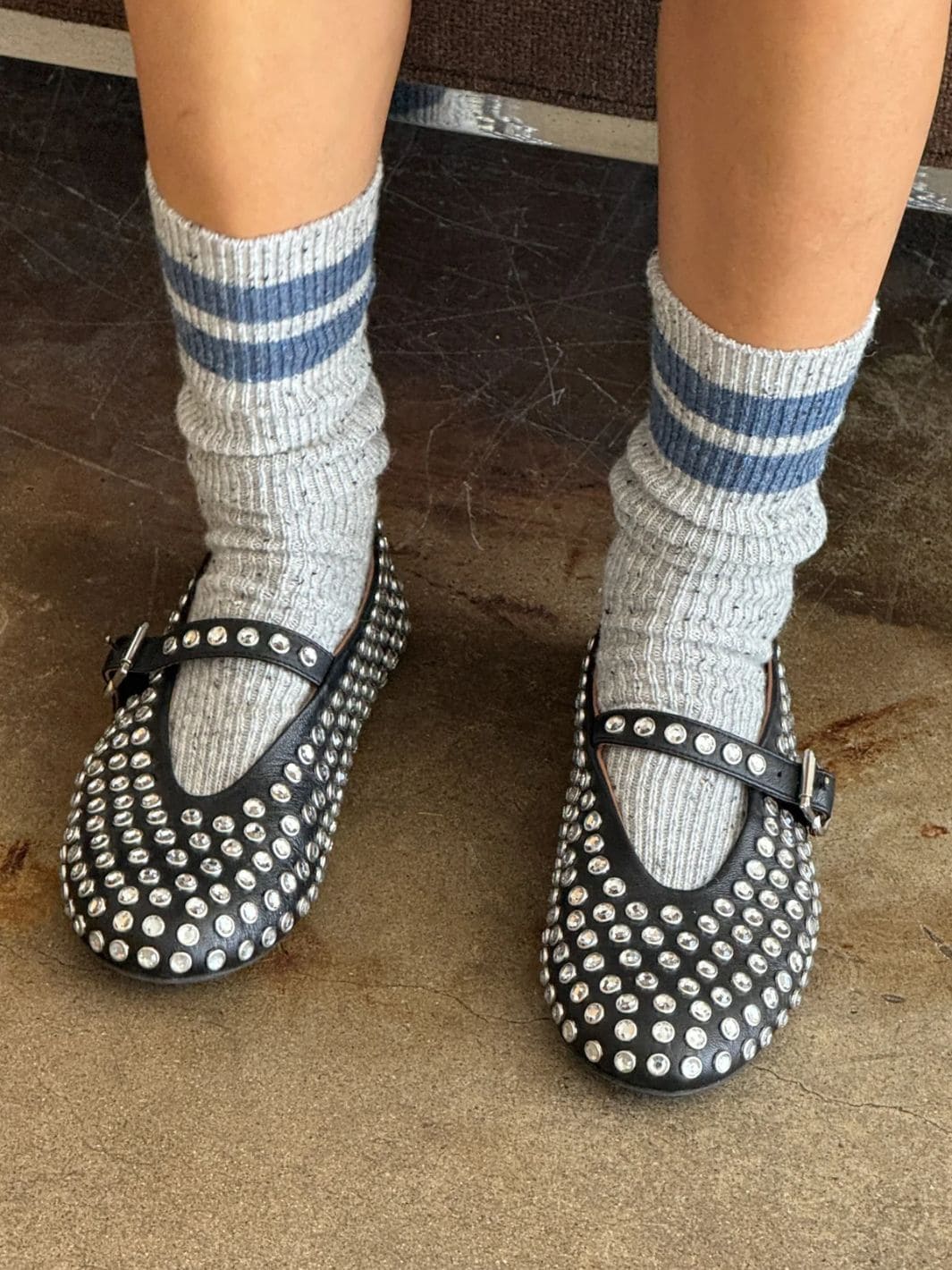 Le Bon Shoppe Snow Varsity Socks - Grey/Blue | Twentyseven Toronto