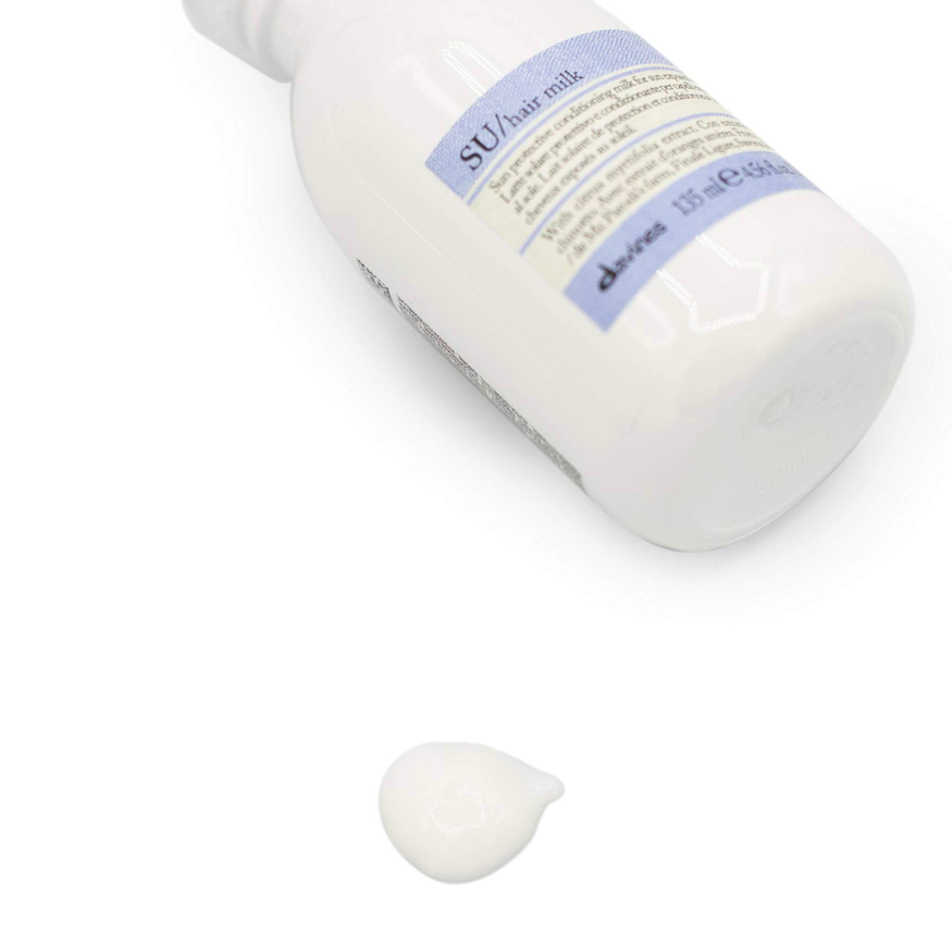Sunny Days Call for SU, a leave-in protective and softening treatment that provides all of the benefits of a cream and the lightness of a spray. Thanks to anti UV-A and UV-B filters, it protects the hair's hydration and color during sun exposure. It has a light formula that conditions hair without weighing it down, leaving it soft and shiny.