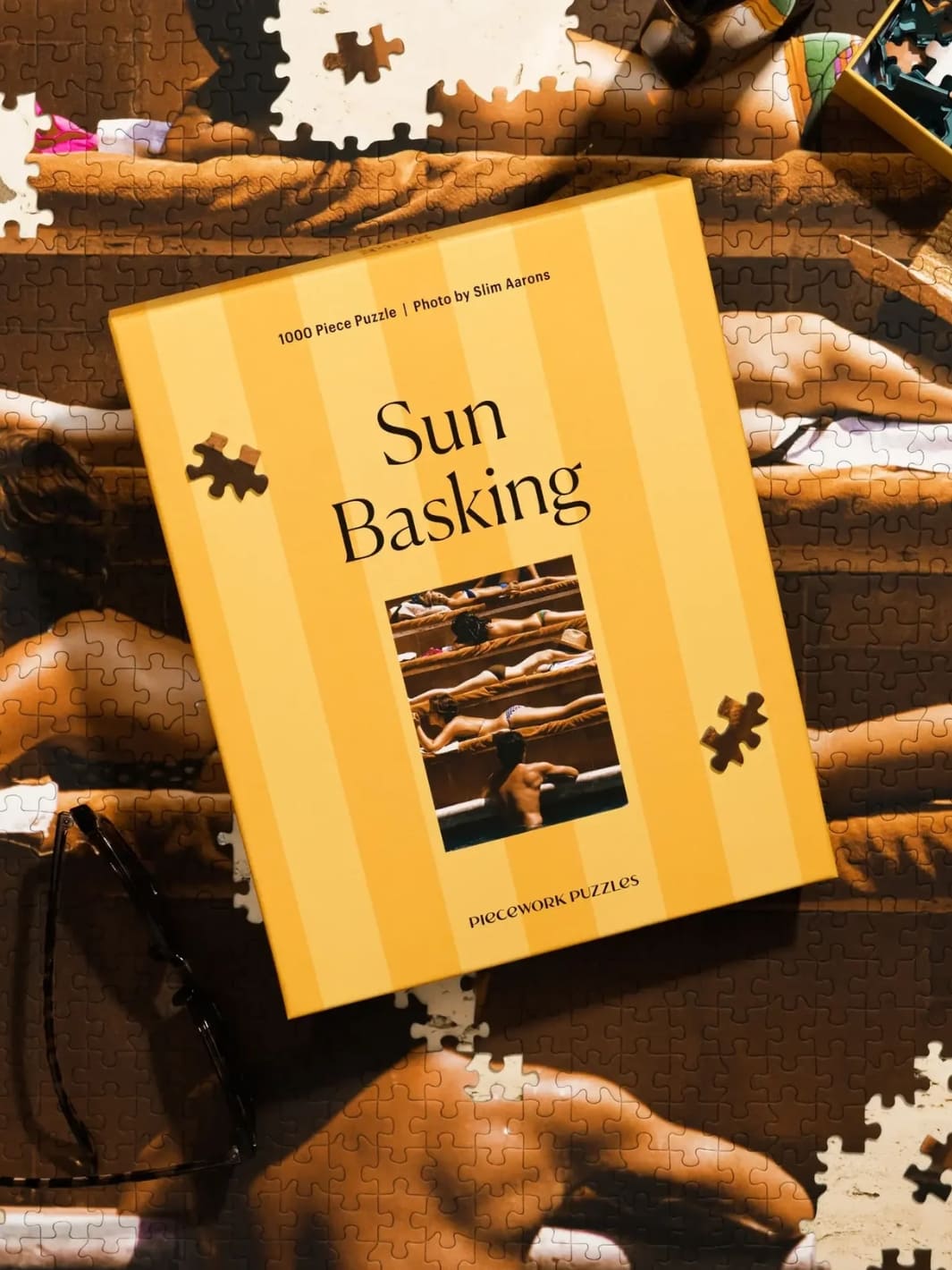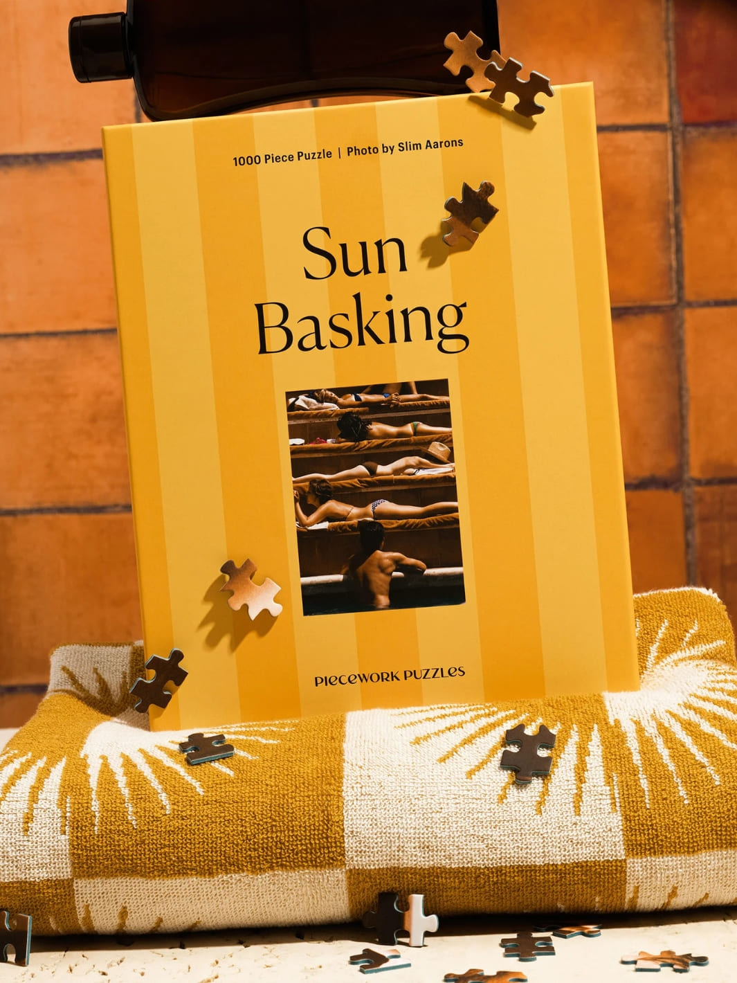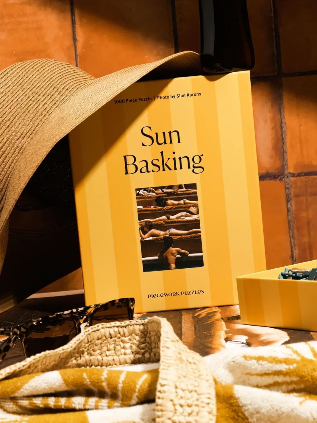 Say hello to Sun Basking—a radiant new addition to the Piecework Puzzles Slim Aarons puzzle collection, a collaboration with Getty Images.