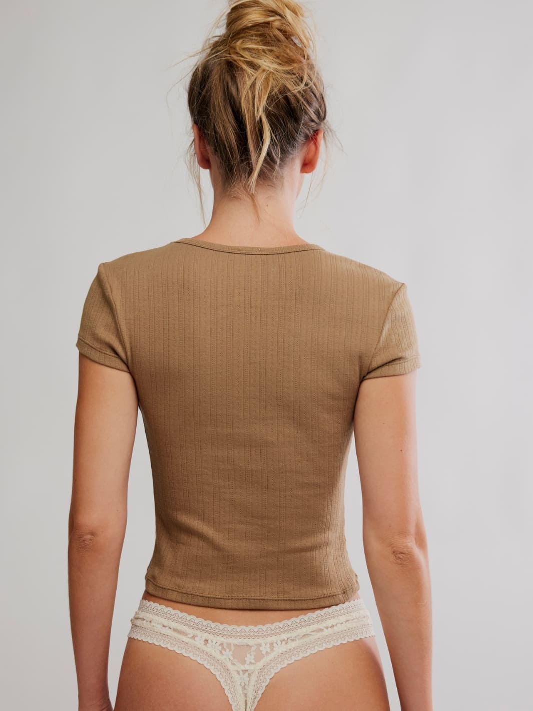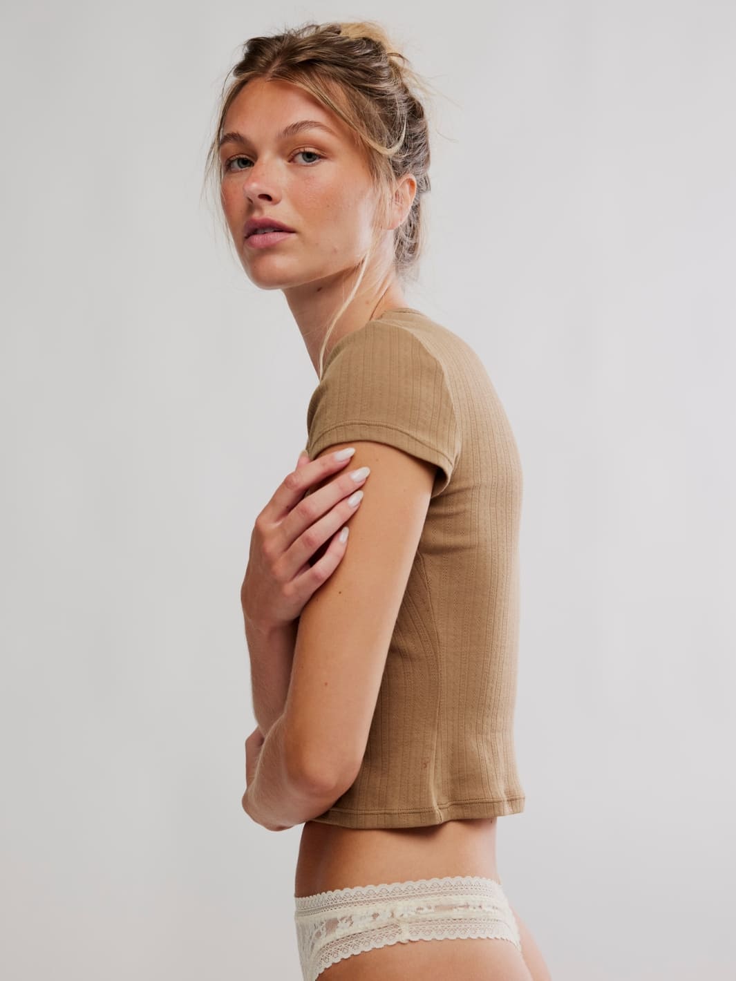 The perfect base layer, redefined. This soft, form-fitting baby tee is crafted in a cotton-spandex blend that hugs in all the right places while keeping you comfy from day to night.